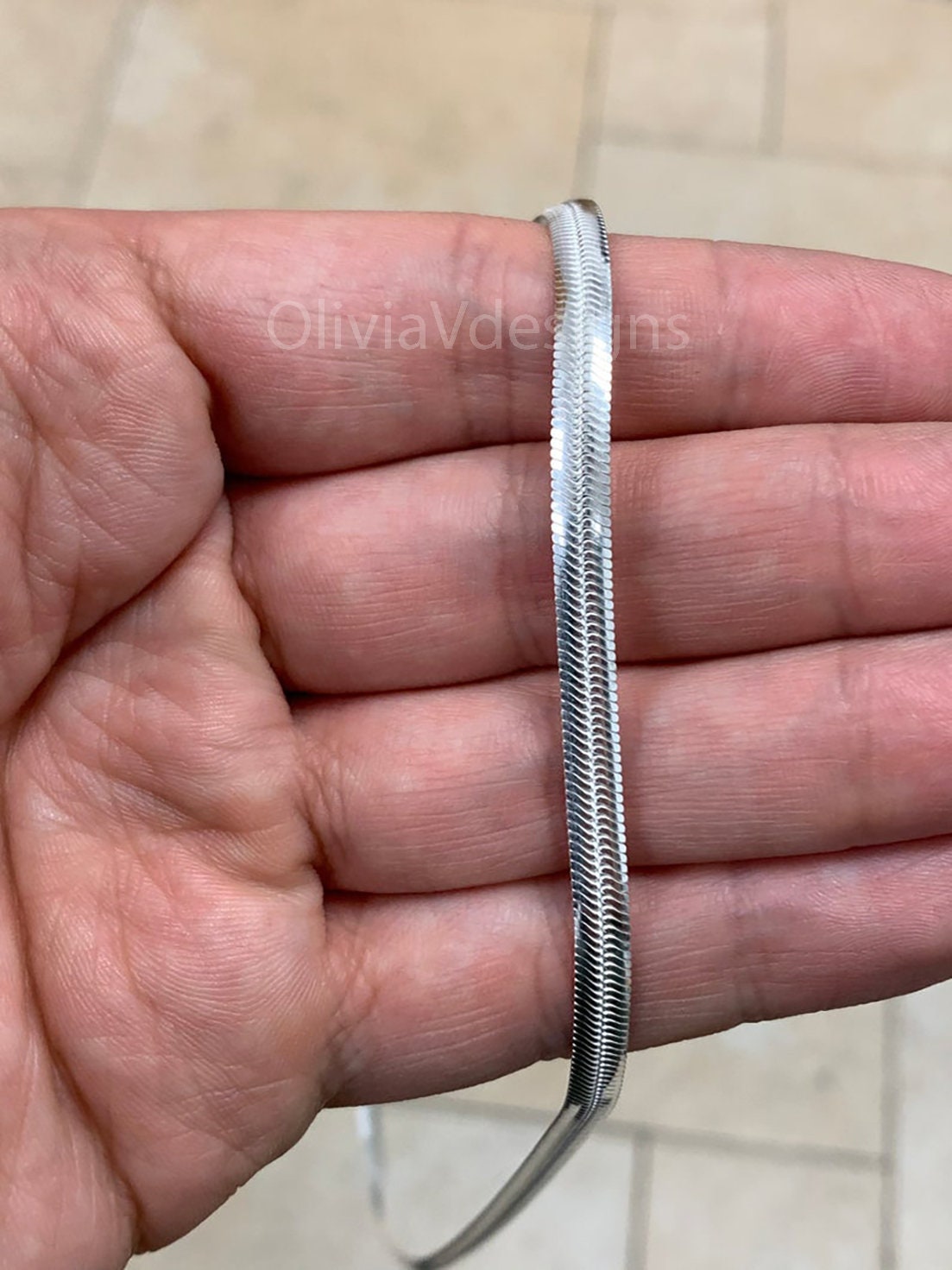 925 Sterling Silver Oval Herringbone Necklace Flex Layering Etsy Uk