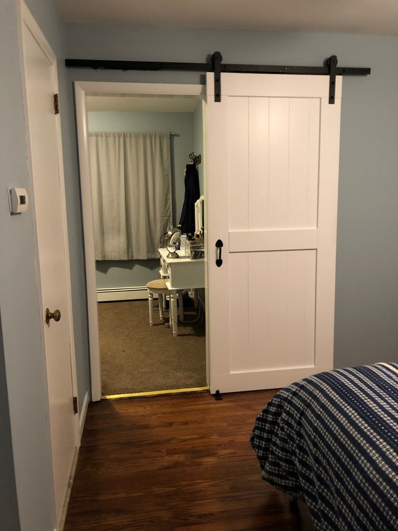 Custom White Painted Smooth Sliding Single Sided Barn Door Etsy Uk